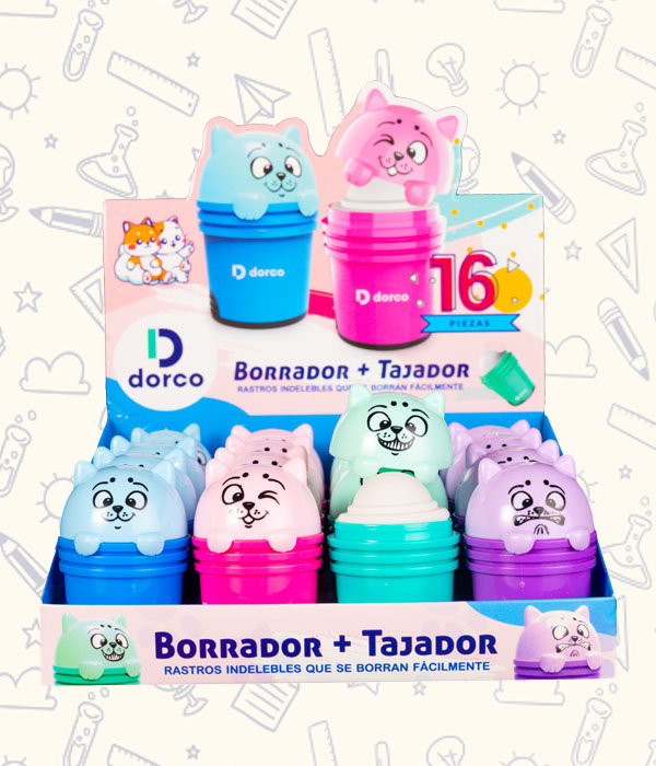 Simplifica tus tareas escolares y de oficina con nuestro práctico Borrador Tajador Dorco útiles. Este innovador producto combina la funcionalidad de un borrador de alta calidad con un sacapuntas eficiente, convirtiéndose en una herramienta esencial para estudiantes y profesionales.